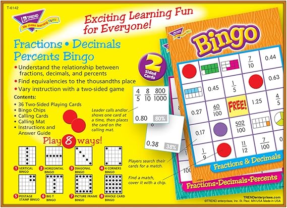 Fractions, Decimals, & Percents Bingo Ages 10 & up (2-sided)
